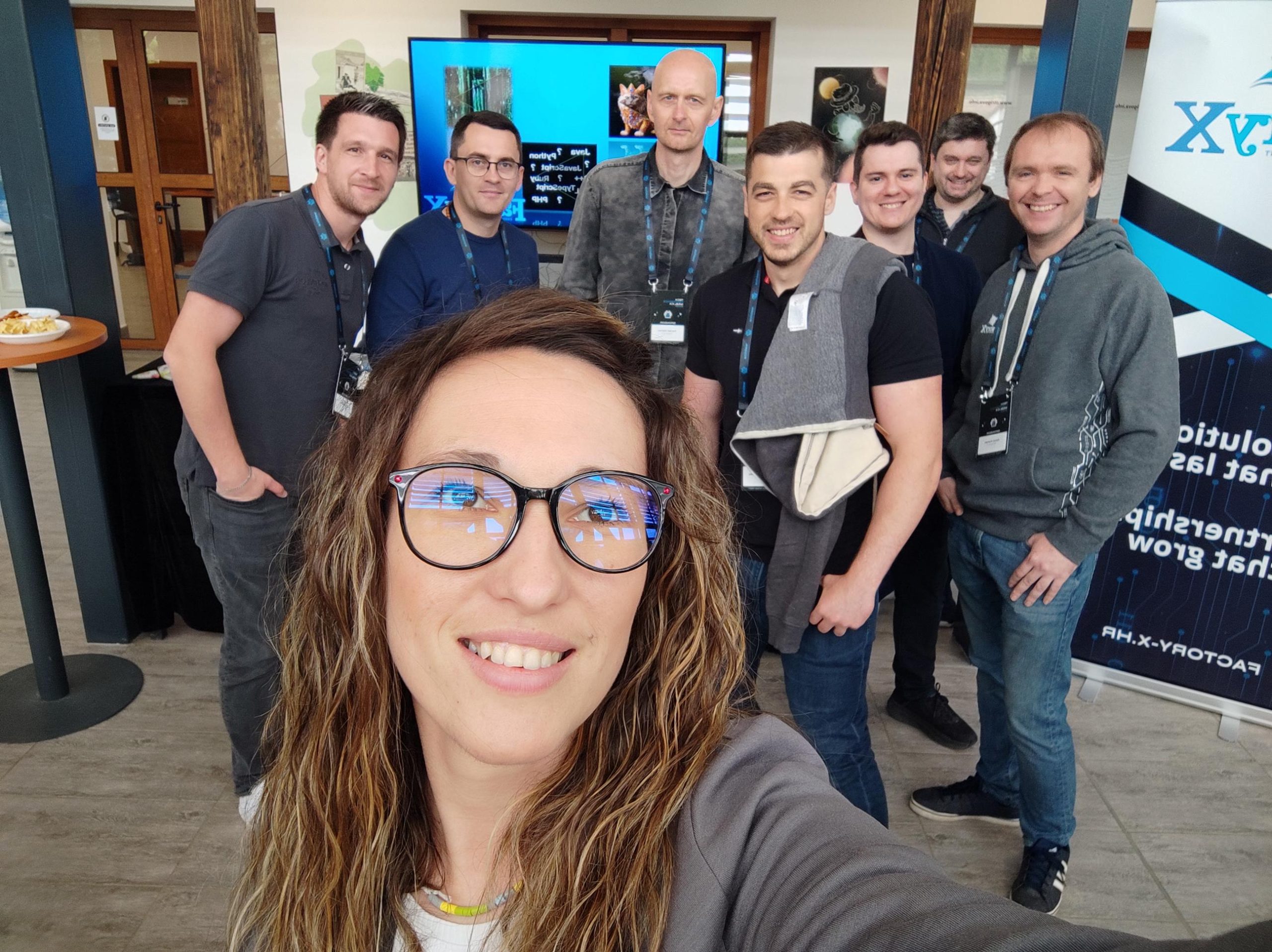 We had our own space in the expo area, where visitors could learn more about Factory X, our services, and projects. But that wasn’t all—since we like to add a bit of fun to serious work, we prepared several quizzes for all those eager for a challenge. From guessing which image was generated by artificial intelligence, to recognizing programming languages, and predicting what a code snippet would do—the atmosphere was fantastic, and the prizes were definitely a hit!